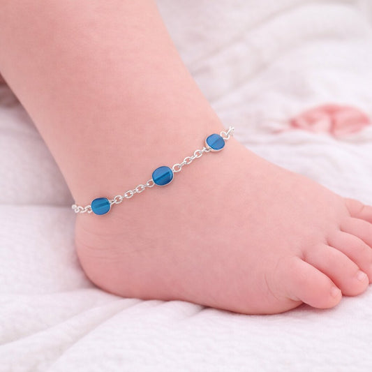 Silver Anklet with Midnight Blue Crystal Charms for Baby Girls (Pair)