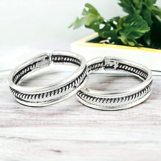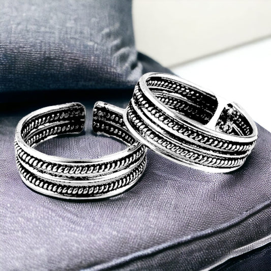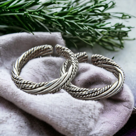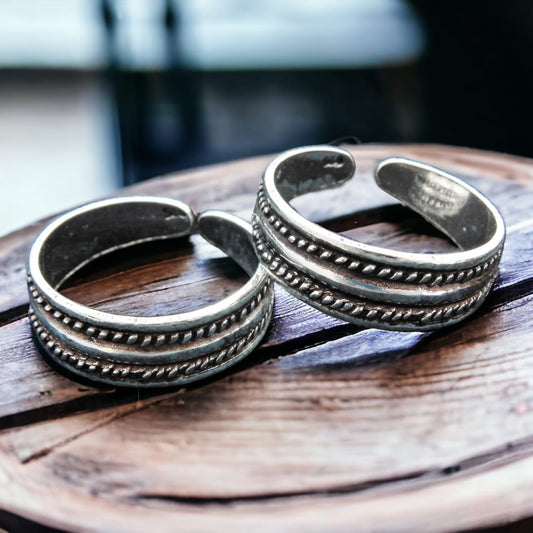 Twisted Lining And Plain Rope Design Toe Ring
