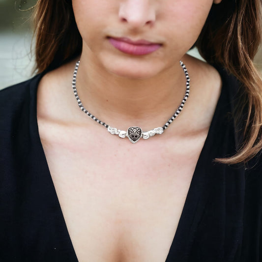 Silver Oxidised Heart Shape Mangalsutra