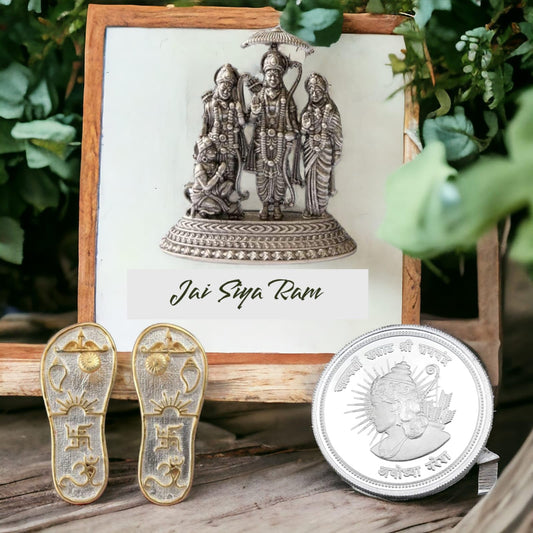 Lord Ram Charan Paduka | Oxidised Ram Darbar Idol | Ram Coin