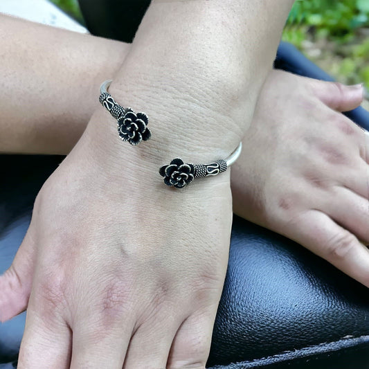 Oxidised Flower Bangle Bracelet