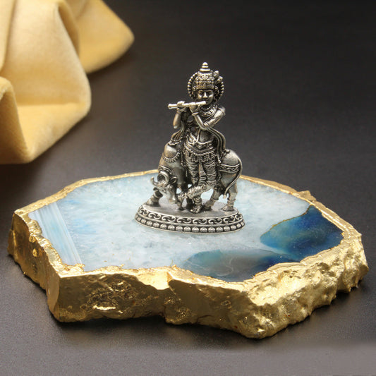 Silver Lord Krishna Ji With Cow Idol