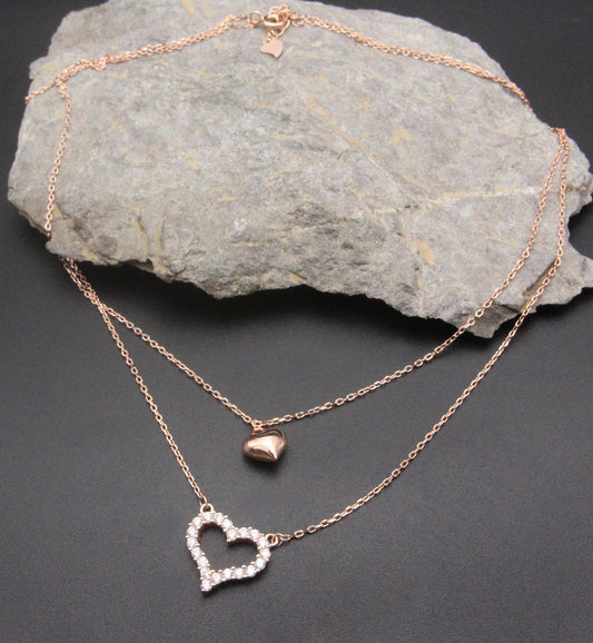 Double Chain Heart Shape Rose Gold Pendant With Chain