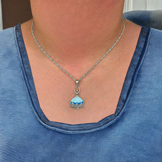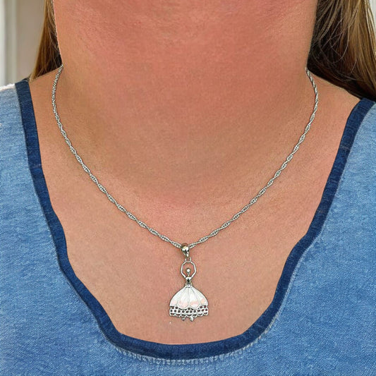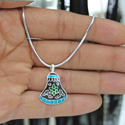 Silver Bell Design Enamel Pendant with Chain