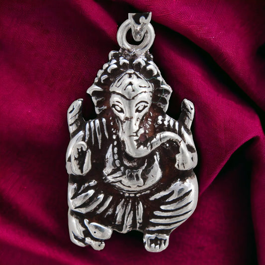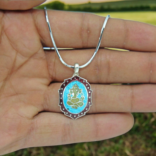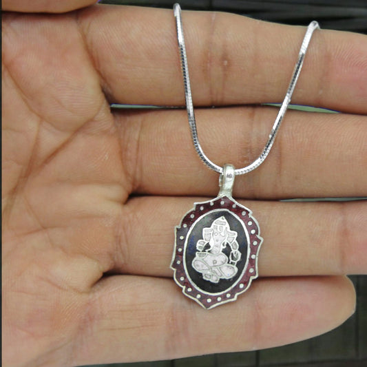 Silver Design Enamel Ganesha Pendant with Chain