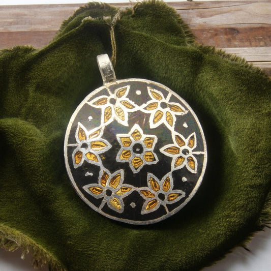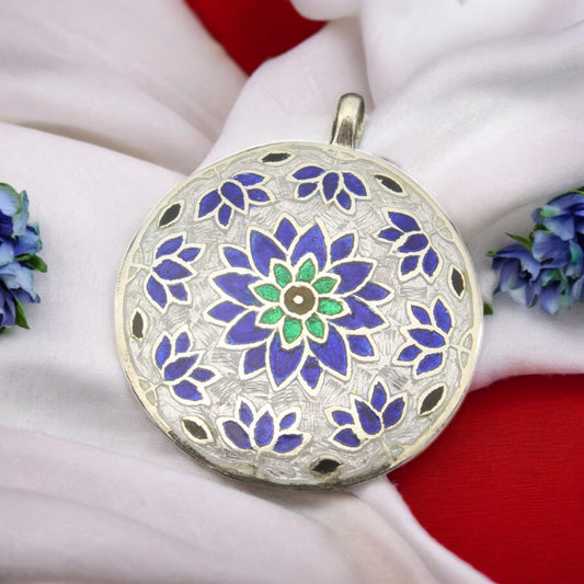 Silver Design Enamel Pendant with Chain