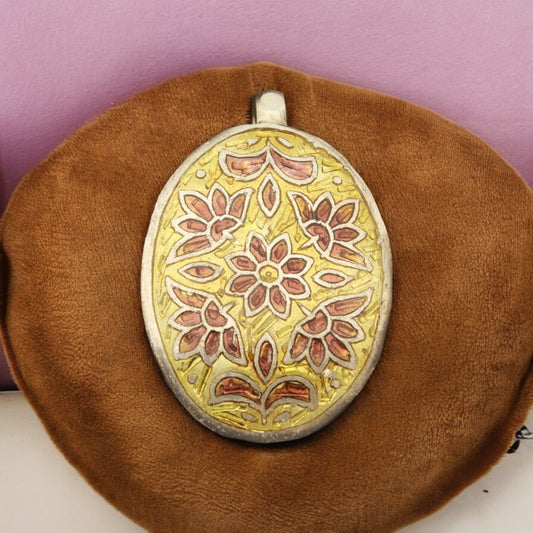 Silver Oval Design Enamel Pendant with Chain