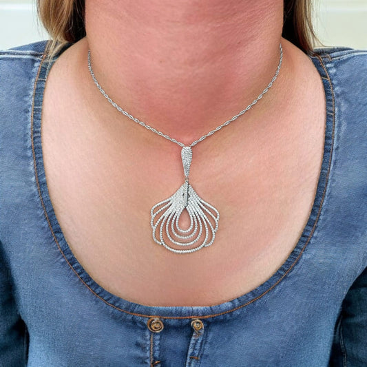 Silver Leaf Design Enamel Pendant with Chain