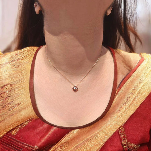 Square Shape Rose Gold Pendant With Chain
