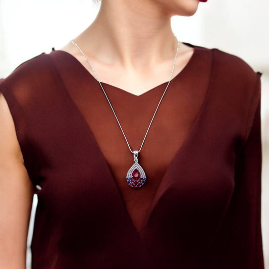 Red Stone Drop Shape Pendant with Chain