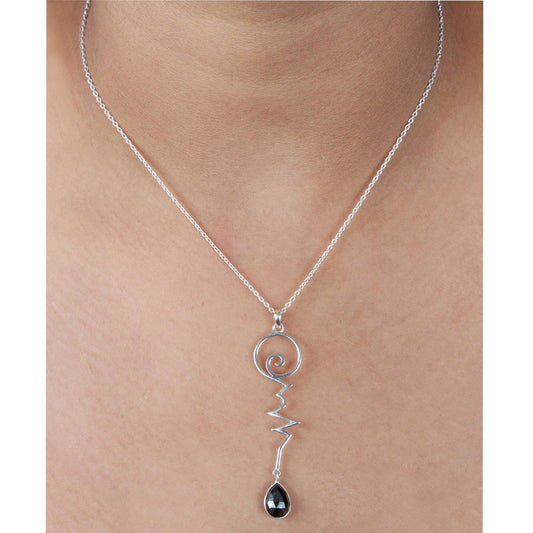 Heart Beat Pendant With Black Drop Stone With Chain