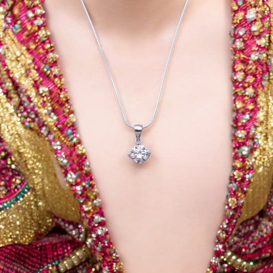 Silver Single Stone Pendant with Chain