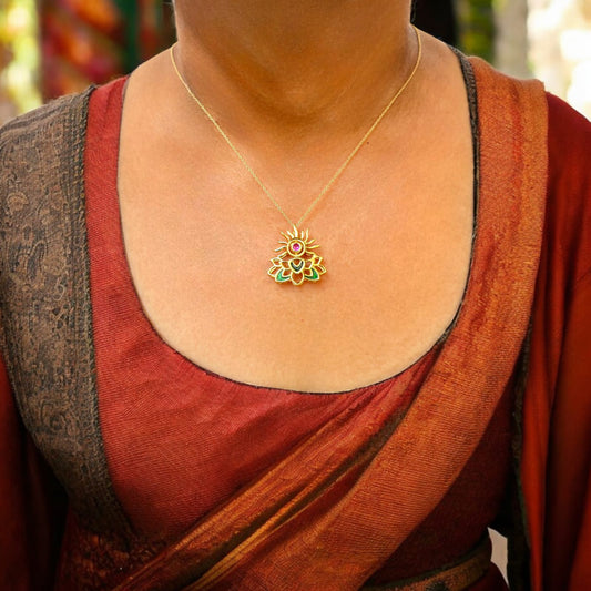 Lotus Flower Design Pendant with Chain