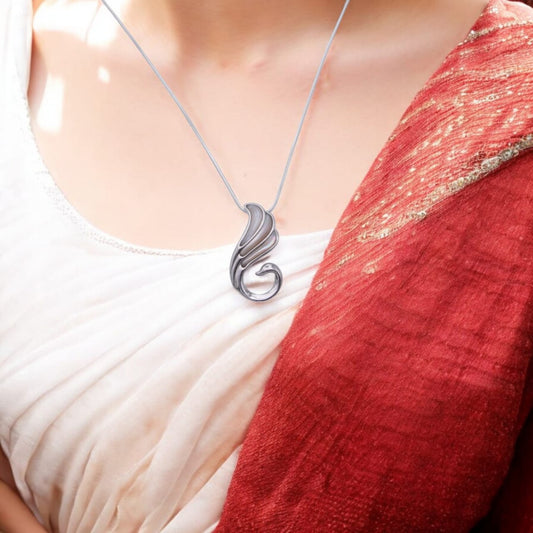 Silver Krishna Mor Pankh Pendant With Chain