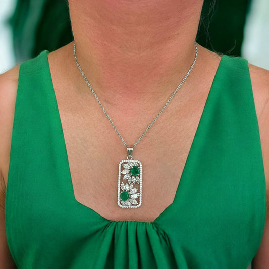 Two Flowers Green Stone Pendant With Chain