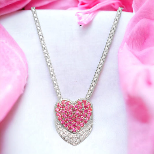 Red Stone Heart Shape Pendant with Chain