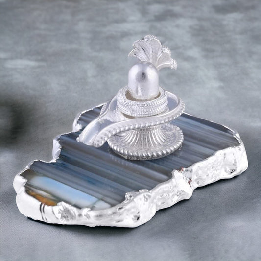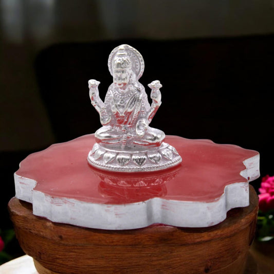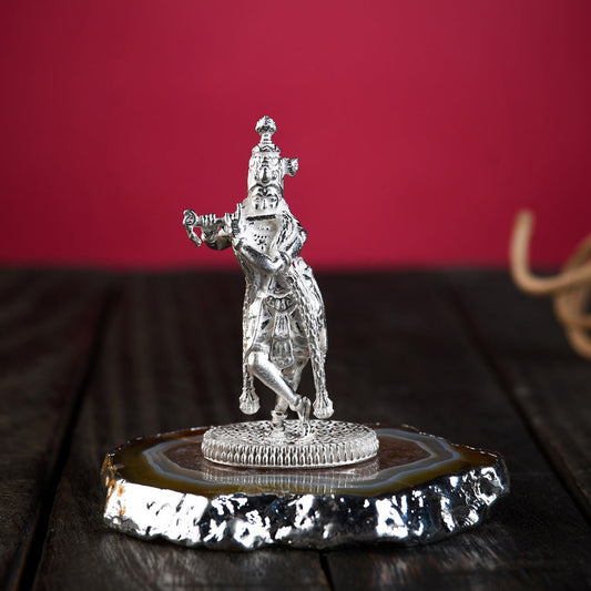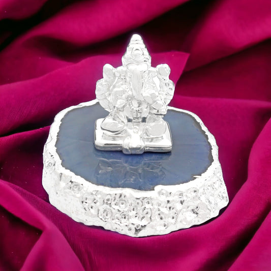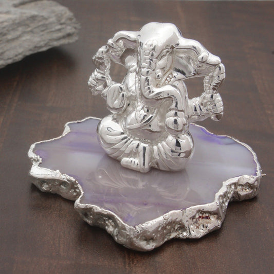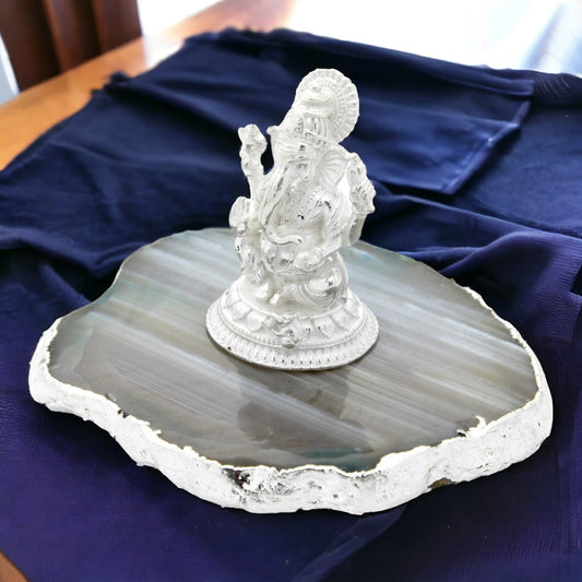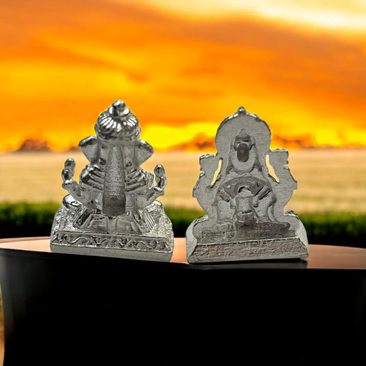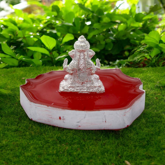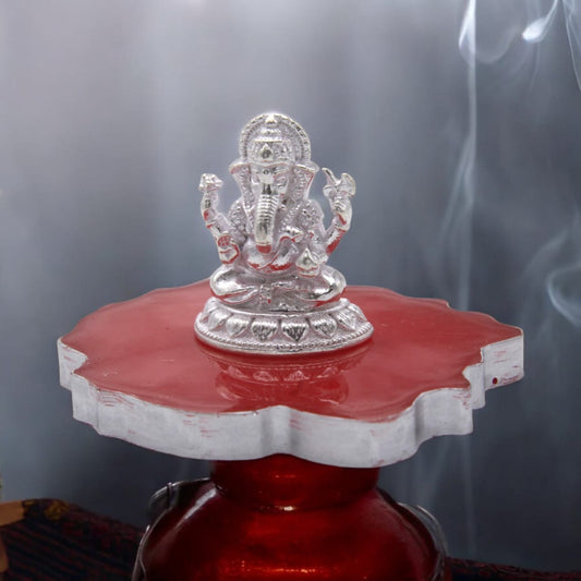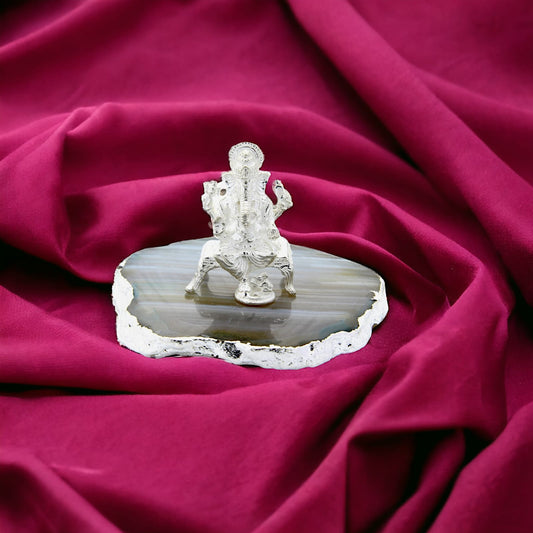 Silver Lord Ganesha With Trishul Drawn On Trunk Idol