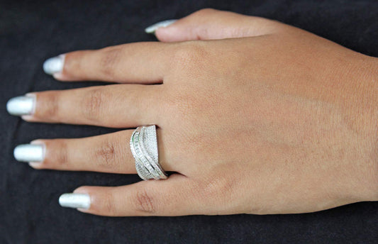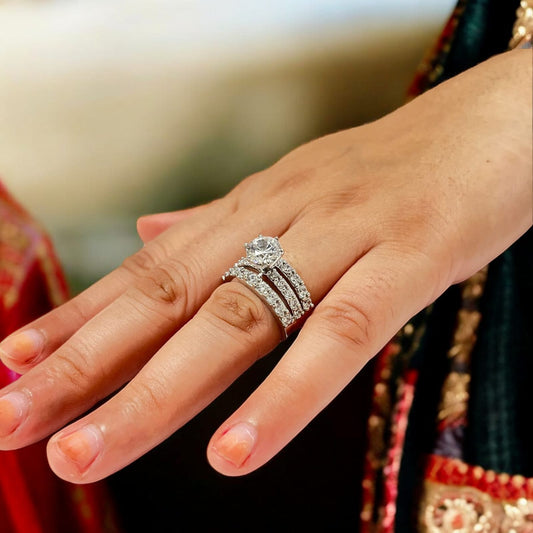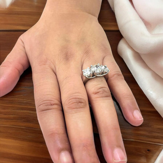 Three Stone Studded Line With Single Swarovski Stone Cockatil Ring
