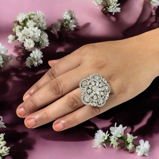 Swarovski Stones Flower Shape Cocktail Ring For Girls And Women