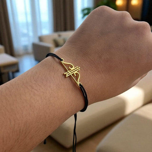 Silver Gold Plated Khatu Shyam Ji Dhanush Bracelet In Black Thread