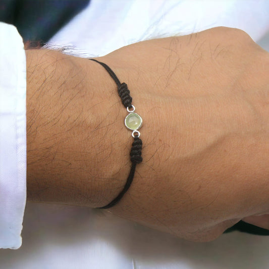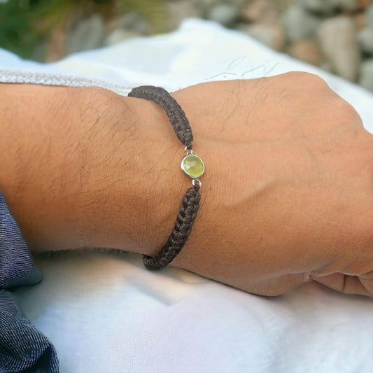 Semi Precious Peridot Birth Stone Black Bracelet