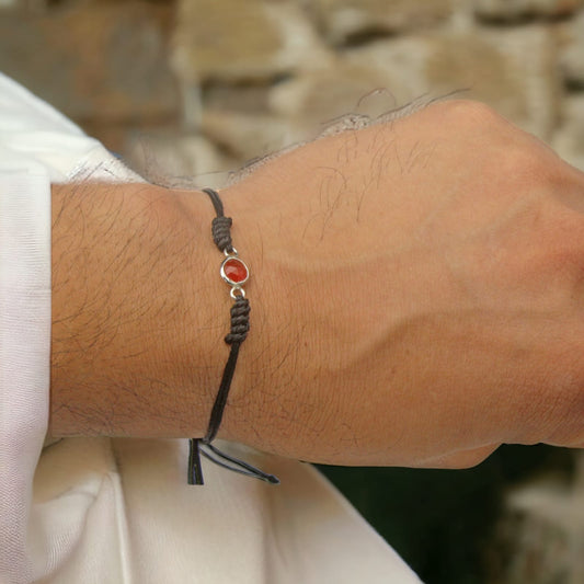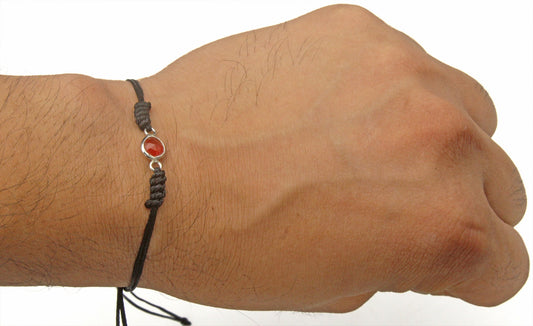 Semi Precious Garnet Birth Stone In Black Thread Nazariya Bracelet