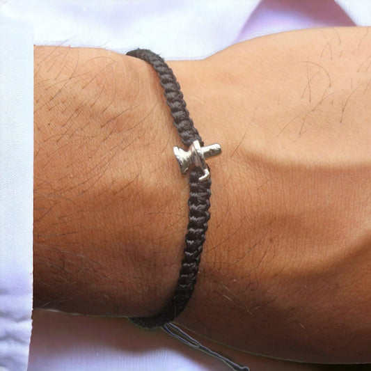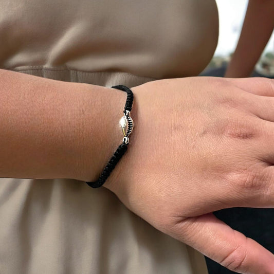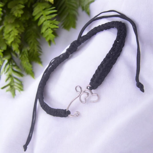Silver Shank Design Bracelet in Black Thread