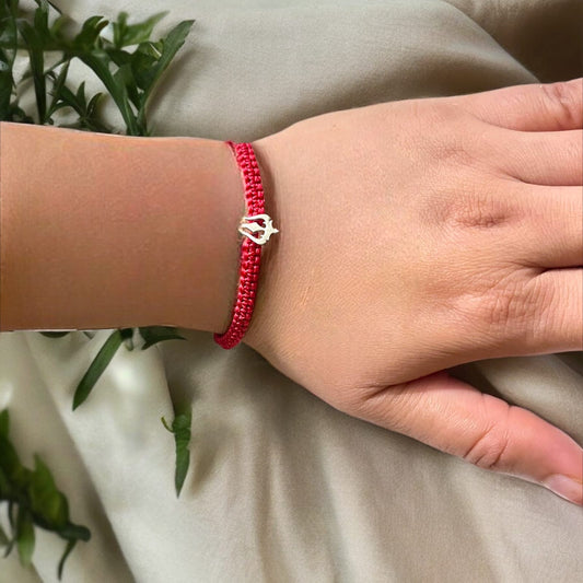 Silver Trishul Bracelet In Red Thread