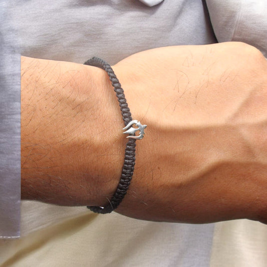 Silver Trishul Bracelet in Black Thread