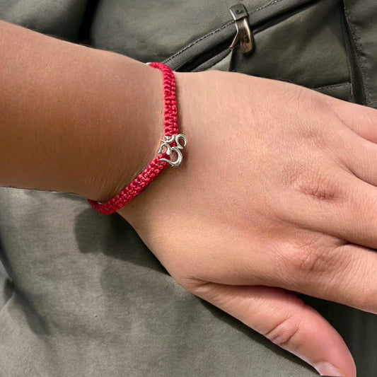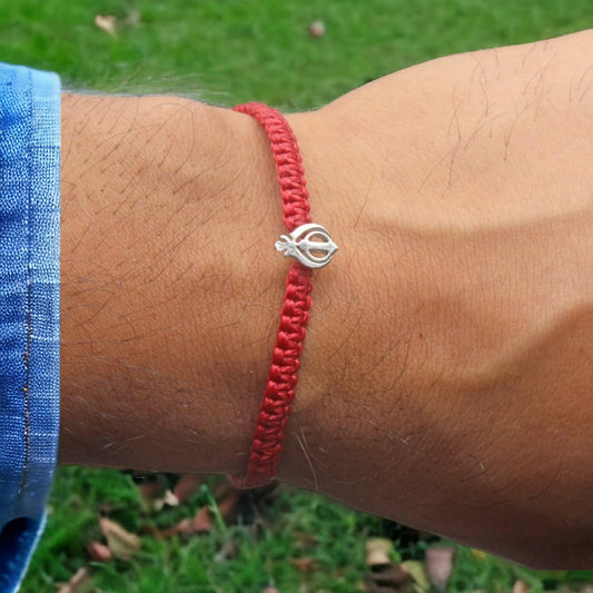 Silver Shivlinga Bracelet In Red Thread