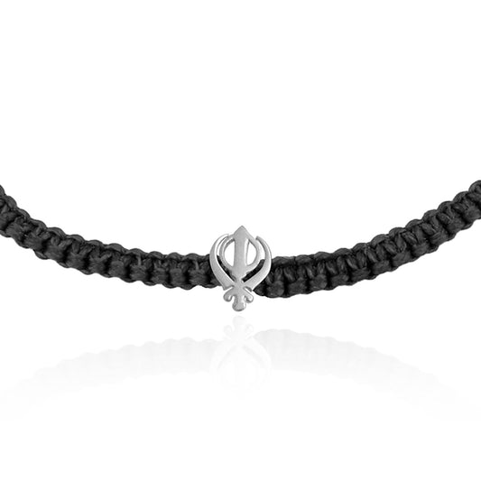 Silver Khanda Bracelet In Black Thread