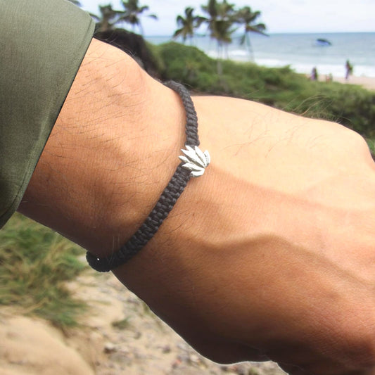 Silver Lotus Flower Bracelet in Black Thread