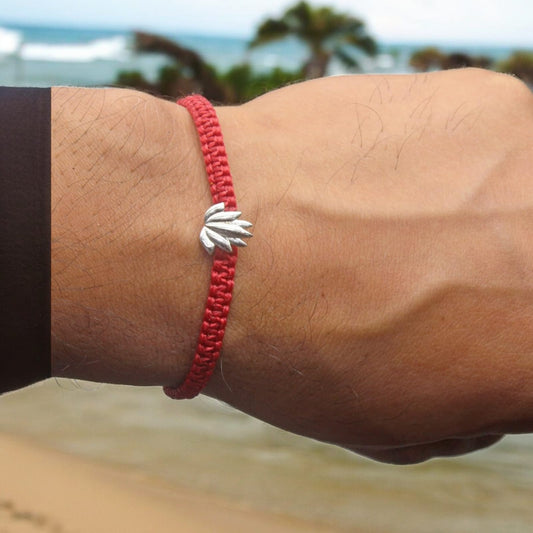 Silver Lotus Flower Bracelet in Red Thread