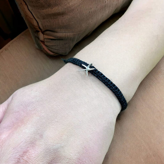 Silver Star Charm Bracelet in Black Thread