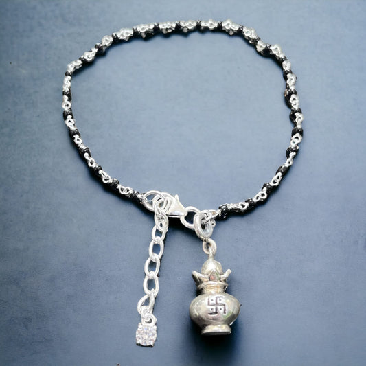 Silver Shivlinga Bracelet In Black Thread