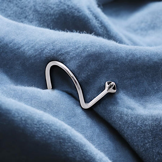 CZ Rhodium Plated Nose Pin With Wire