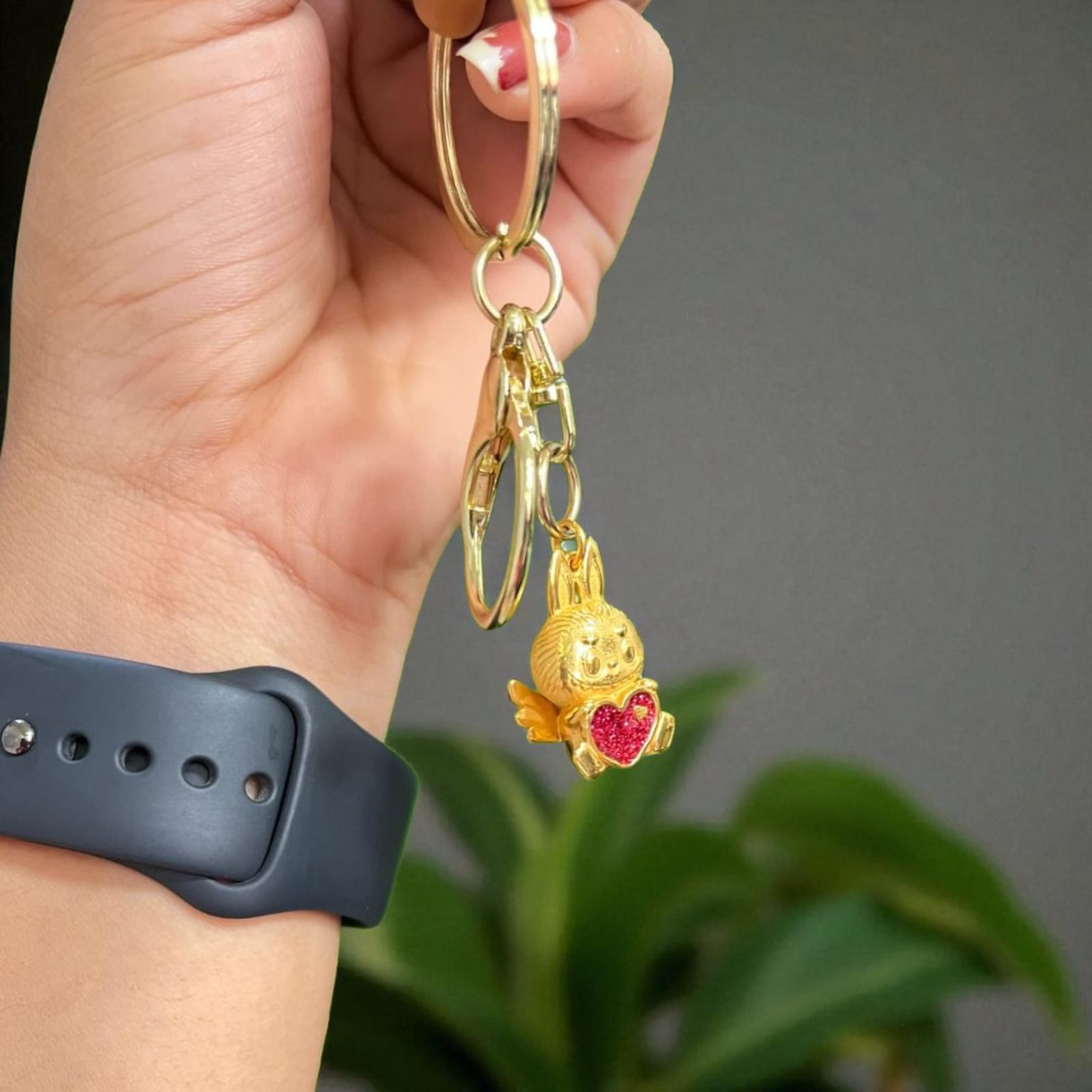 Whether you’re buying it for yourself or as a gift, this Brass Gold Plated Labubu Doll Key Ring with Ribbon is ideal for birthdays, anniversaries, festive occasions, or simply as a surprise for someone who loves collectibles. Add a touch of whimsy to your everyday accessories with this charming Labubu doll charm. Crafted in brass with luxurious gold plating, this adorable collectible features a delightful bunny character holding a sparkling red heart, making it an irresistible fashion statement.
